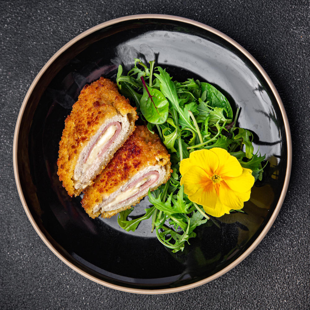 De kip cordon bleu is een gerecht dat bestaat uit malse kipfilet gevuld met smaakvolle ham en romige kaas. Dit culinaire hoogstandje wordt gepaneerd en goudbruin gebakken, waardoor het een knapperige buitenkant krijgt die perfect samengaat met de smeuïge binnenkant.