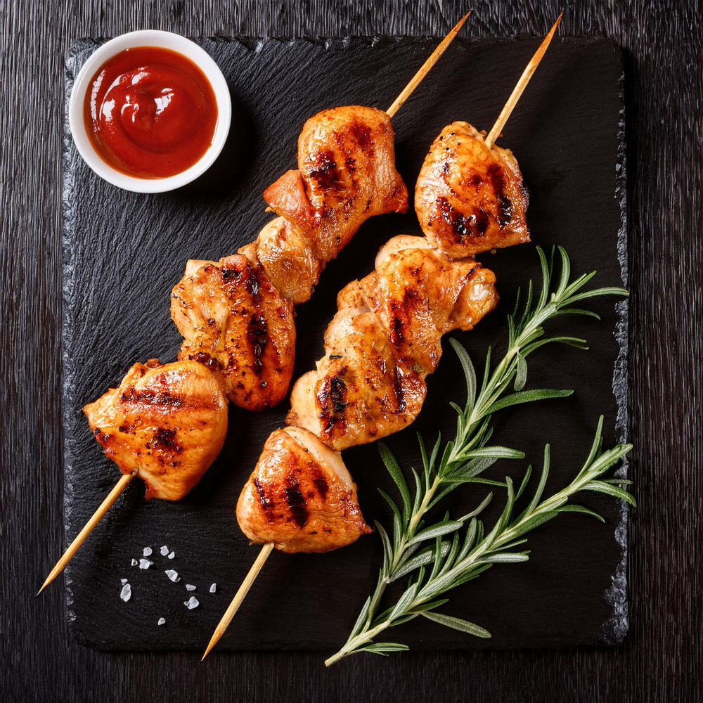 Kipspiezen gemaakt van dijenvlees, voorgemarineerd. Alleen nog maar even te garen en klaar!