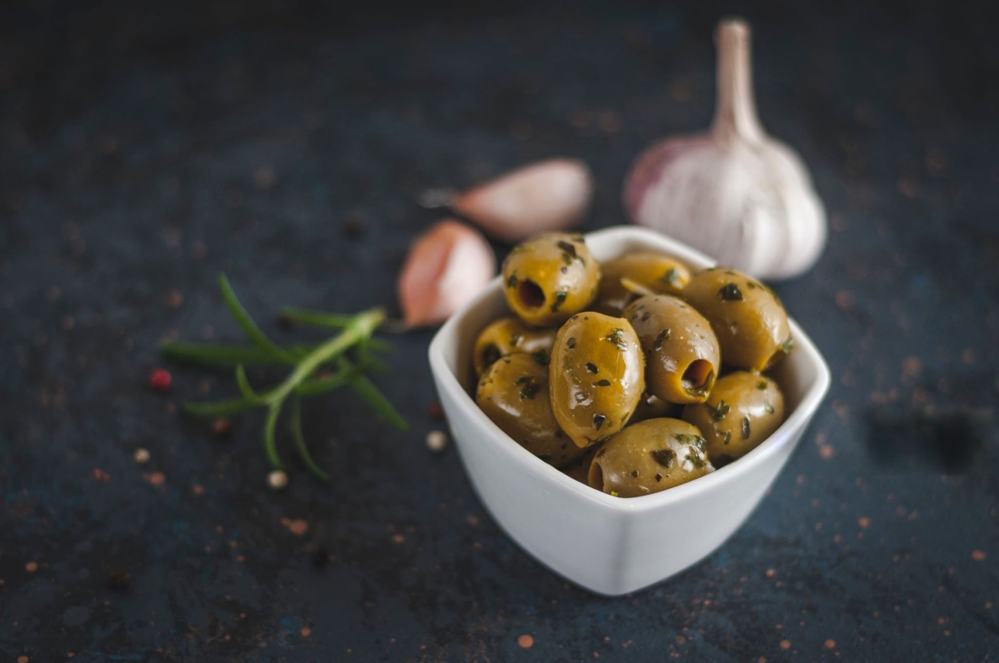Als je deze eenmaal geproefd hebt ben je verkocht. Deze heerlijke olijven zijn gemarineerd met knoflook en basilicum en onmisbaar op het borrel plank.